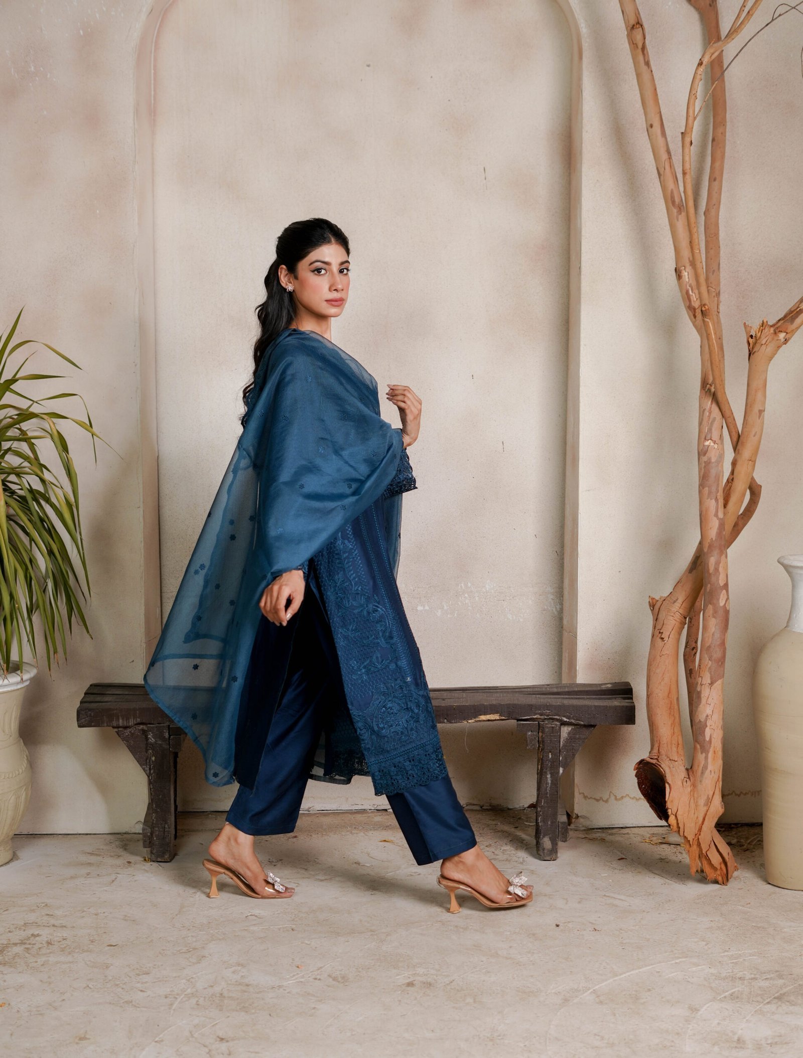 Make an elegant style statement with our Zinc Blue 3-piece embroidered suit, crafted from premium viscose fabric with exquisite organza dupatta.