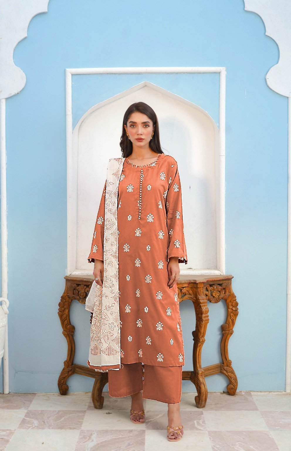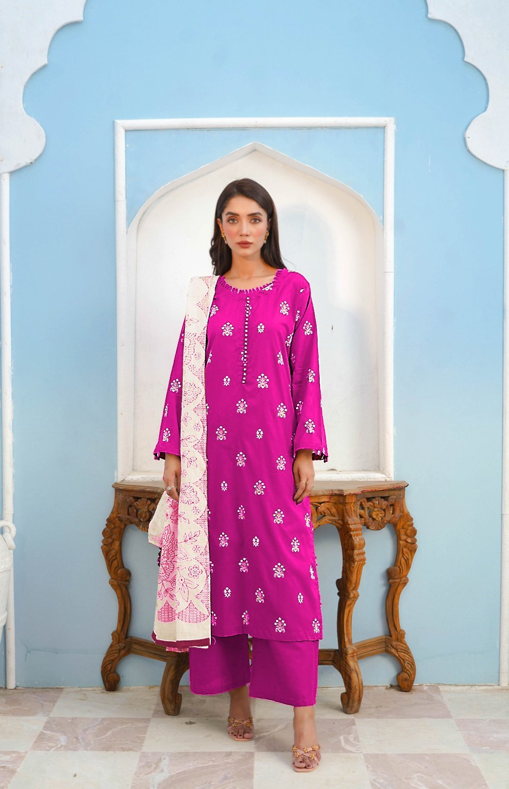Step into elegance with our 3-piece Lawn Embroidered Floral Suit. Perfect for the warm season, this outfit offers: