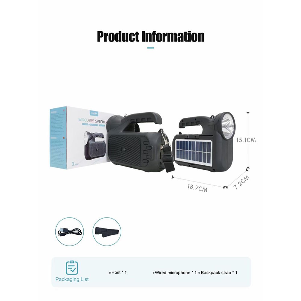 | Main Features | FM, TWS, TF, LINE-IN, U disk, Flashlight |