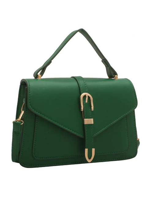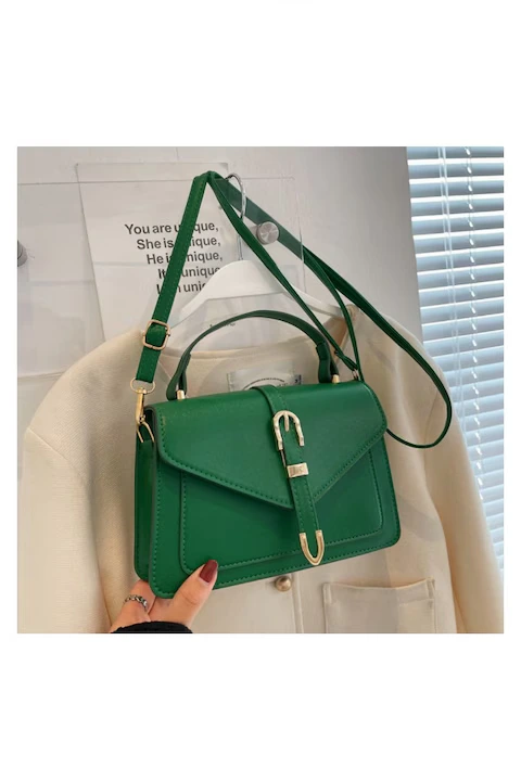Crafted from high-quality materials, the bag features a sleek structured design and a stylish magnetic buckle closure that keeps your essentials secure while maintaining a clean, elegant look. The rich green color paired with gold-tone hardware creates a luxurious appearance that complements both casual and formal outfits.